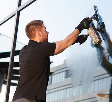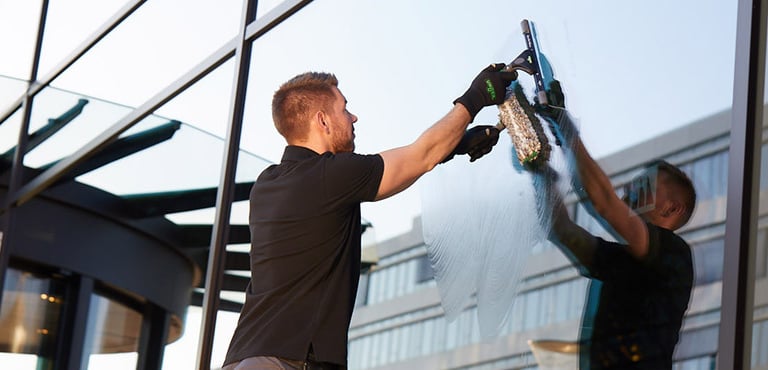 We use specialized cleaning systems for professional glass cleaning. This includes professional cleaning products for safe and efficient cleaning of glass & steel surfaces.